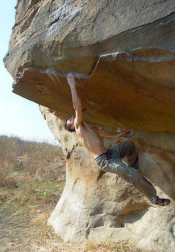 "bardzo ladny, logiczny bald, w drodze ze świąt do domu, 30 minut, łatwe 8A moze nawet 7C+."
