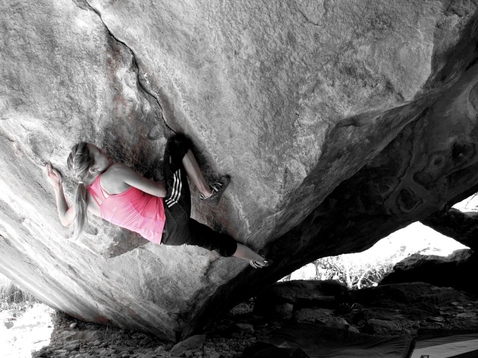 Sasha DiGiulian. Amerykanka po ostrych przejściach z liną postanowiła pobawić się troszkę w buldering. W tym celu odwiedziła topową texańską miejscówkę Hueco Tanks. W ramach rozwspinania pokonała całą serię siódemkowych problemów. Nie sprawiały one najwyraźniej Sashy zbyt dużych trudności, gdyż jedną z nich
