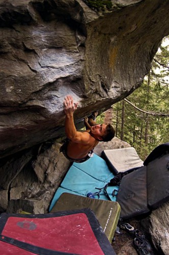 Najwyraźniej warun w Szwajcarii jest co najmniej tak dobry jak w Polsce:-). Na dowód tego znów ostro zawalczył w tamtejszych lasach duet Paweł Jelonek-Łukasz Kudła. Pawłowi udało się wciągnąć kolejną 8A+ - tym razem padł Sofa Surfer. Zdaniem Ramba Kanapowy Surfer jest nieco trudniejszy od pokonanej niedawno Lewej Ręki, choć z kolei zdaniem innych znawców zasuguje jedynie na 8A.