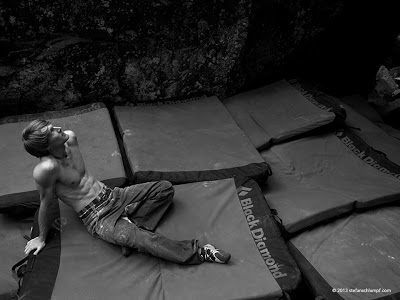 Nalle Hukkataival próbował się z tym problematem po raz pierwszy około czterech tygodni temu, jednak wtedy szanse powodzenia były nikłe. Nie dlatego że nie był w formie ale w totalnie mokrej skale raczej trudno 8C wciągnąć:-). Tym razem warun był nieco lepszy i dwa dni prób wystarczyły do wgiełgania na wierzchołek. Zobaczcie sami jak Nalle ładnie zapinał łódeczki na La Force Tranquille: