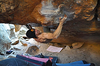 Michał Ginszt na No Late Benders 8A w Rocklands