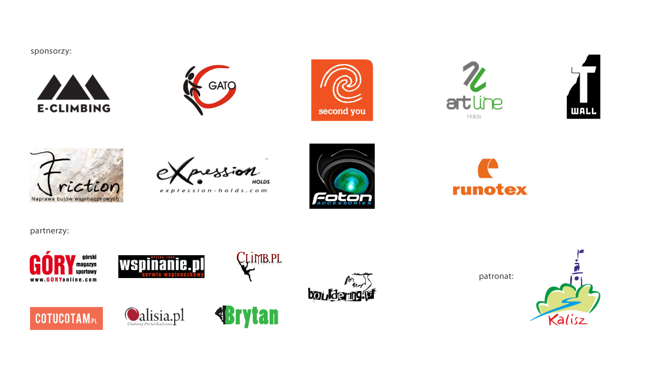 Szczególne podziękowania dla Gatowalls, T-Wall , e-climbing shop oraz blozone za wyjątkowe struktury i chwyty.