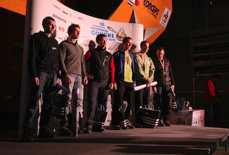 Ważne jednak, że efekt na niedzielnych finałach był znakomity. Nie za łatwo, nie za trudno. Dużo topów, ale również efektownych zwałek z ostatnich ruchów, a nawet z dokładek do topów. Publika szalała, co zresztą pomagało zawodnikom zawalczyć na maksa. Niezapomniany obrazek to Romek Główka schładzający sobie lodem kontuzjowana łapkę i chwilę później kończący bulder w ostatnich sekundach czasu!