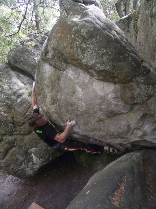 Nieco bardziej oblegany bulderek wciagnał z kolei Wojciech Gasienica-Roj. W Fontainebleau, w okolicach którego teraz zamieszkuje pokonał Symbiose. Choć trudności przechwytów opisuje zaledwie cyferka 7C to trzeba dodać, że Roju do przejścia zaledwie jednej próby. A 7C flash w Blo to niezły wynik. Tym bardziej, że trudność to jak zwykle obła końcówka:-)