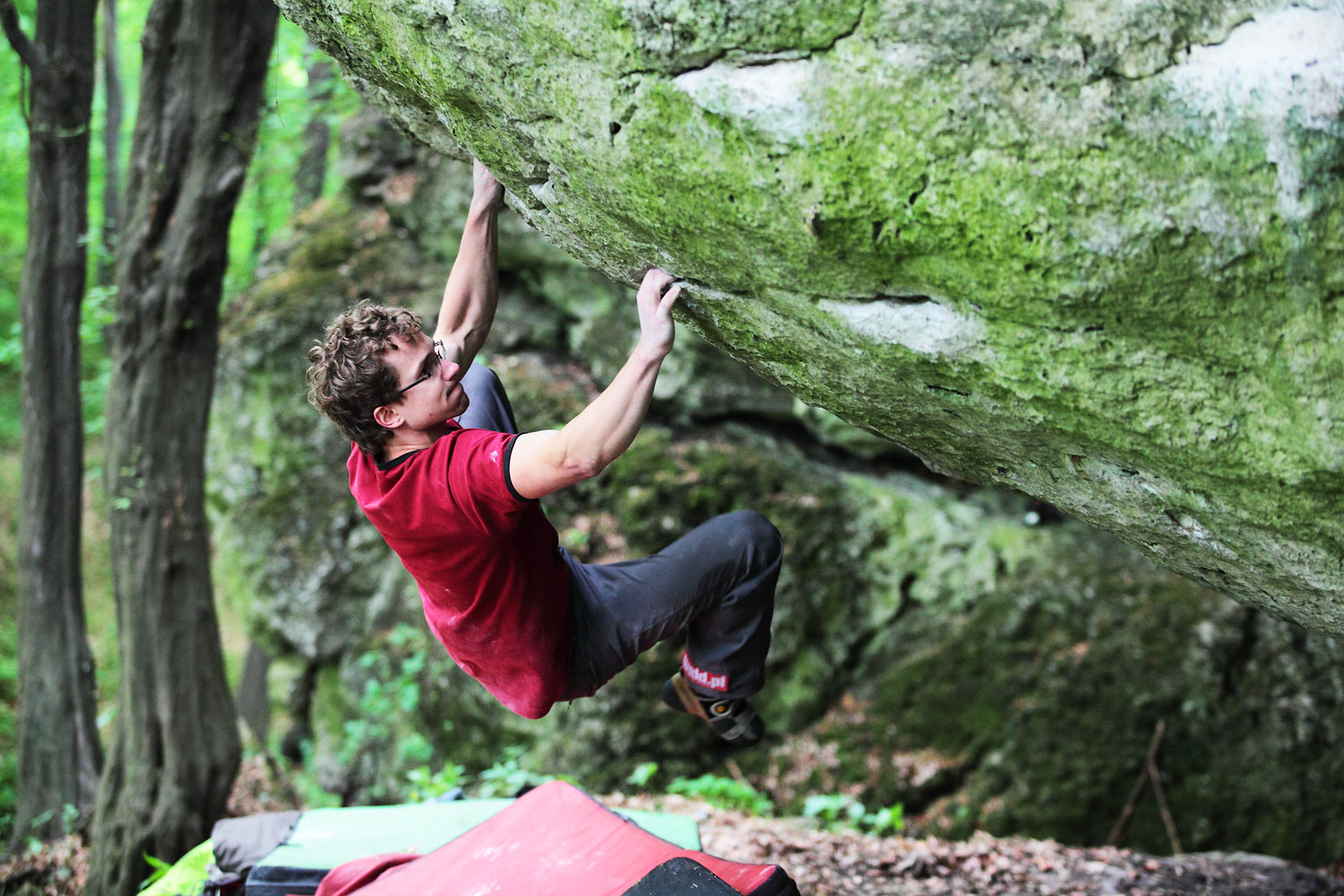 Przenieśmy się teraz do Kusięt gdzie ostatnio sporo działał Marcin Berger. Po rozwspinaniu RP na La Psiocha i przyfleszowaniu Bazyliszka 7C przyszła kolej na nieco mocniejszy projekt. W sobotę Marcin szczęśliwie zatopował na jednej z najtrudniejszych propozycji nory - Szatańskie Wersety 8A+. No to teraz czekamy na Disturbię. A może nawet na Ali Babę?