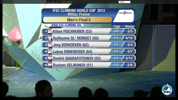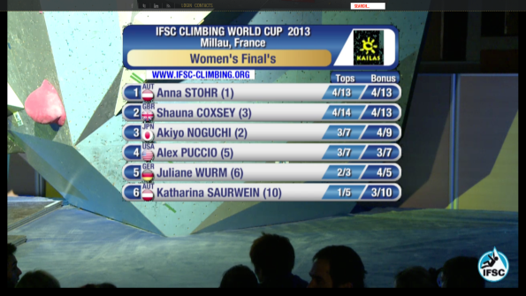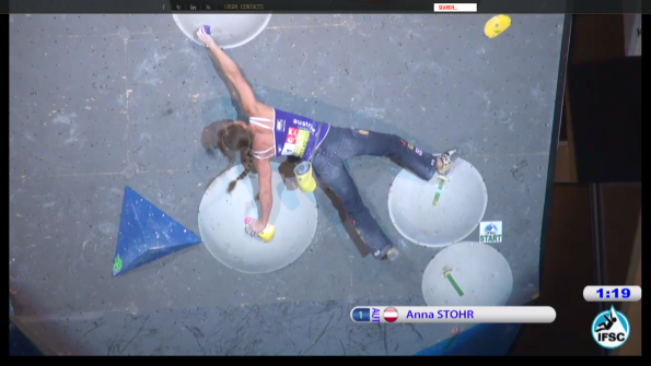 Za nami kolejna edycja pucharowych zmagań. Przez dwa dni najlepsi panelowi bulderowcy sprawdzali komu najlepiej się zgina i kto najlepiej rozczaja koncepcyjne przystawki zaserwowane przez routesetterów (czy też jak wolą niektórzy komentatorzy ekiperów:-). Wśród pań egzamin najlepiej zdała utytułowana Anna Stohr. Mało jednak brakowało, a prymat najmocniejszej odebrała by jej młodziutka Brytyjka Shauna Coxey. Zaledwie jedna próba więcej potrzebna do zaliczenia topu zadecydowała o złotym medalu. Wśród panów najlepszy (i to zdecydowanie) okazał się Kilian Fishhuber. Jako jedyny zaliczył trzy topy. Pozostali finaliści szczytowali zaledwie raz. Fanów cyferek informujemy że trudności przystawek w finale wydają się całkiem wkaszalne. Panowie musieli kolejno pokonać 7B+, 7B+, 7B+ (najtrudniejsze:-), 7B+/C (ale mniej patenciarskie). Panie z kolei 7A+, 7B, 7A+. Czyli teoretycznie dość łatwo. Ale każdy kto oglądał relację może potwierdzić, że w tym wypadku cyferki są wielce mylące;-)